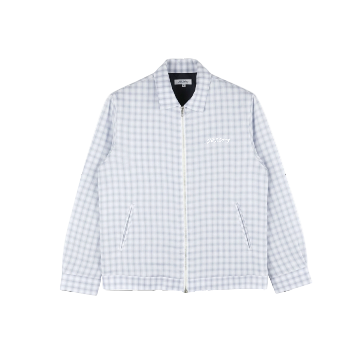 Stay fresh and layer up with this light blue/white check jacket from JBJclothing. With its clean check pattern, full front zipper and side pockets, it’s built for both comfort and street appeal. The relaxed fit makes it easy to throw on over a tee, while the subtle details keep it sleek and versatile.