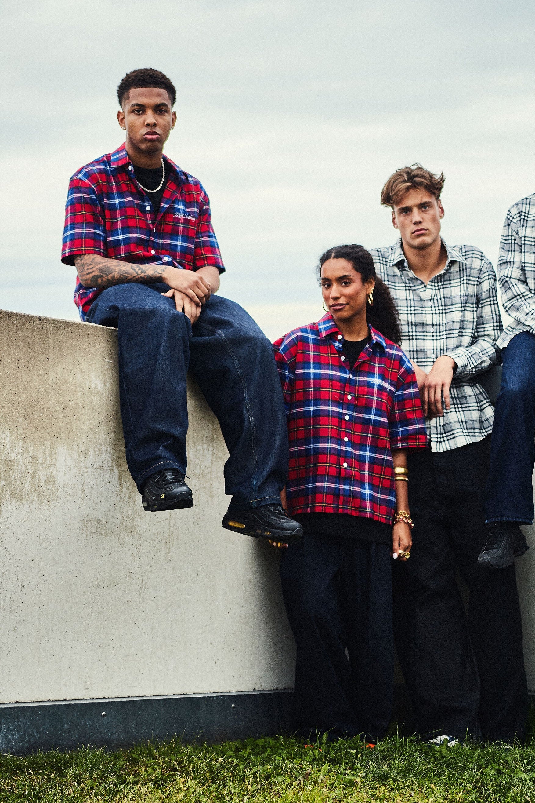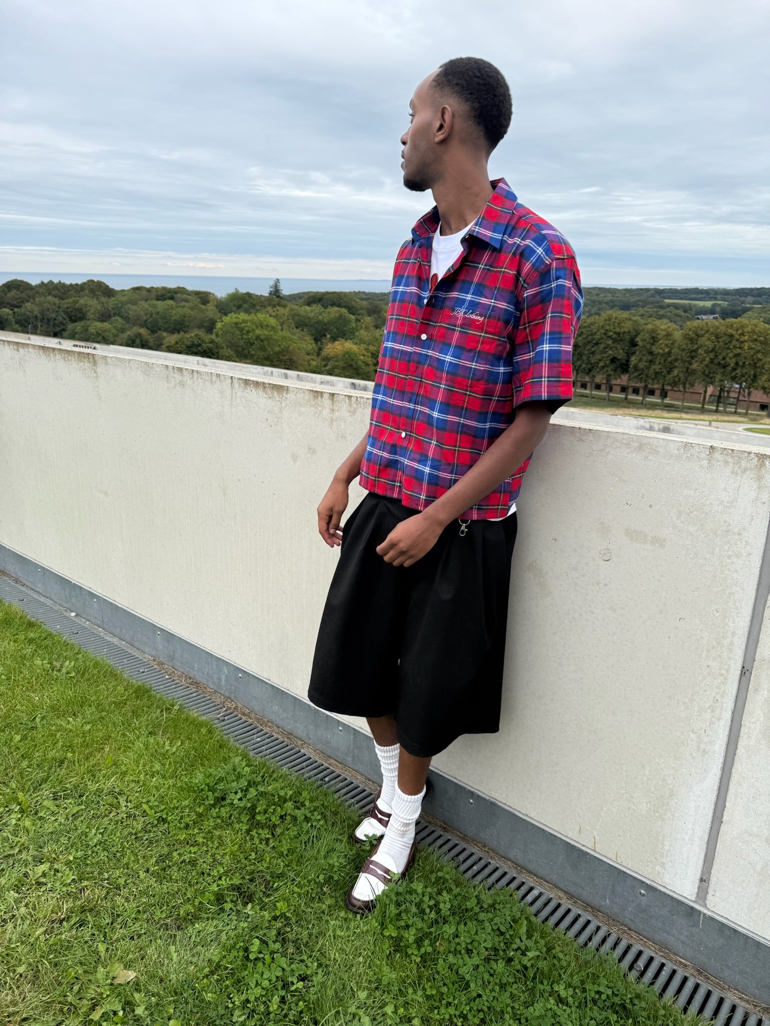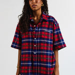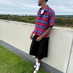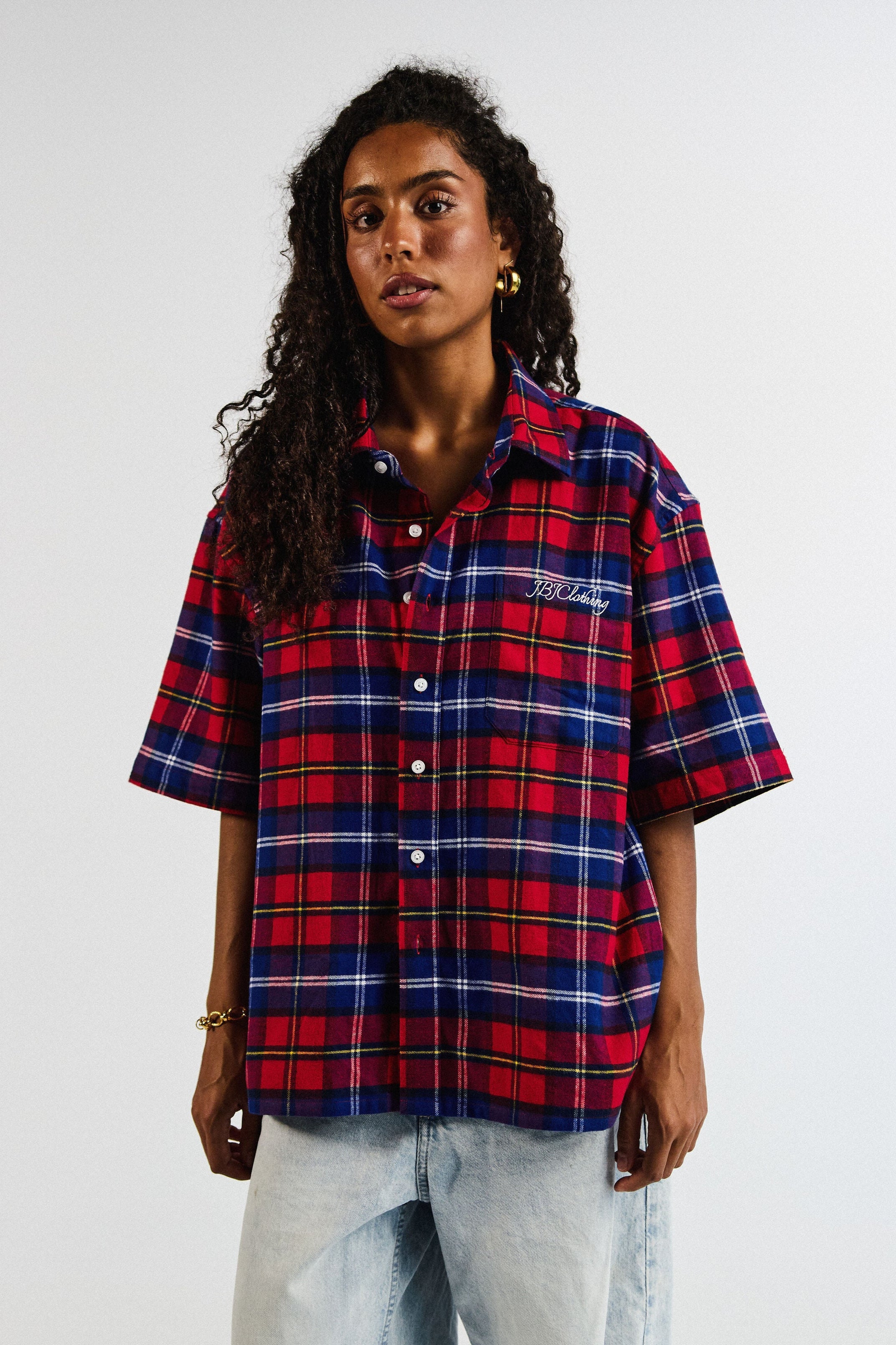 .Level up your fit with this oversized check shirt from JBJclothing. Rocking a bold red/blue plaid, relaxed short sleeves and clean button-up front, it’s made to keep you fresh and laid-back. The chest hits with a subtle JBJclothing logo embroidery, giving it that street-ready vibe.